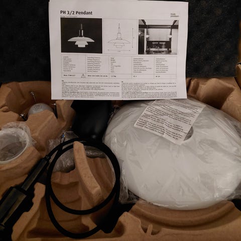 Sælger 2 stk smukke Poul Henningsen / Louis Poulsen PH 3/2 pendler i blank messing og hvide opal-skærme. Lamperne er næsten som nye. Ingen skår eller lignende i glasset. Helt nye hvide stofledninger (ca. 3 m). Begge sælges samlet for 6500 eller køb enkeltvis for 3500