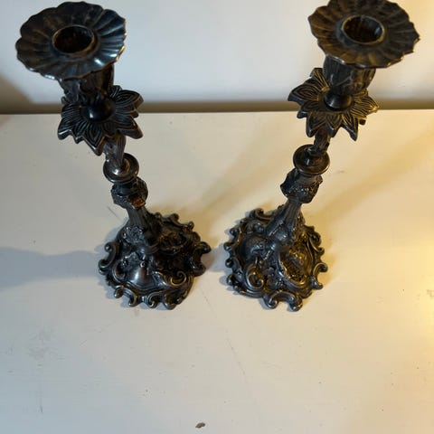 I flot stand, se gerne billeder for yderligere detaljer. Prisen er 325 for begge lysestager, men de kan også købes enkeltvis for 175 kr per stk.
