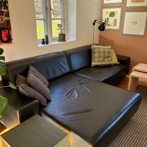 Hurup lædersofa med chaiselong- sort