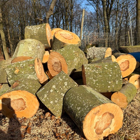 Brændetriller ca 25-30cm, primært eg,ær og bøg liggende klar til afhentning på mandag kl 8 . Velegnet til videre kløvning efter behov. Jeg vil tro at der er ca 4m3.