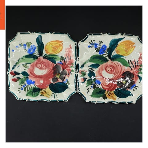 Vægplade af keramik med et indpræget motiv af to hvide fugle omgivet af blomster og et hjerteformet design. Pladen har en sort kant og er lavet af Gabriel Sweden, som angivet på bagsiden af objektet. Den har en ophængningsanordning på bagsiden, hvilket gør den velegnet til vægophæng. Størrelsen af pladen er 28 cm.