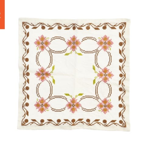 Denne dug måler 49x49 cm og er lavet af hvidt stof med broderede pink roser og grønne blade. Dugen har en elegant håndsyet blomstermotiver, der tilføjer et raffineret touch til bordindretningen.