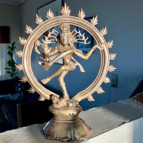 Figuren forestiller 3 skildpadder oven på hinanden med et detaljeret mønster af kinesiske symboler på skjoldet. Figuren er fremstillet i en gylden metallisk farve med antikbehandling for at fremhæve detaljer og mønstre. De tre skildpadder er et kinesisk Feng Shui symbol for et lykkeligt og langt familie liv.