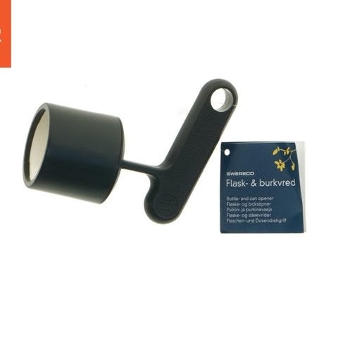 Skruelågsåbner med et stort behageligt plastikgreb og et gummi-indsats, hvor skruelåget sættes i. Passer til skruelåg op til 40 mm i diameteren.