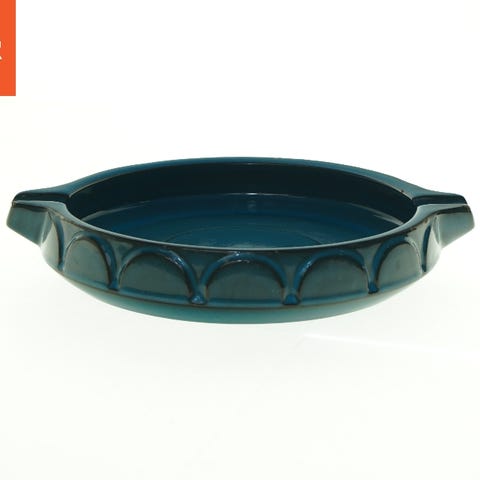 Knabstrup, Venedig rundt fad i blålige nuancer. Designet af Waltraud Praschak. En stor blå keramik skål med blank finish. Skålen har en rund form med en smallere bund og udbuede kanter.