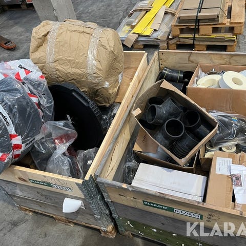 Auktionen indenholder diverse PVC og galvaniseret rør. Reoler de står på medfølger samt rullevogne