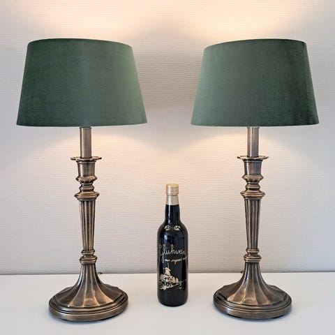 Komplet med matchende runde velour lampeskærme.