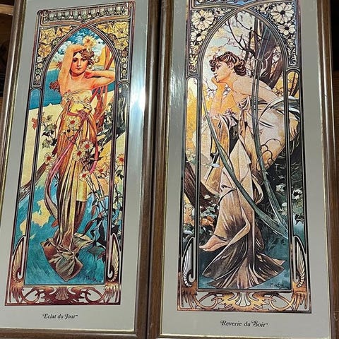 Disse smukke damer er "Automne" og "Hiver". En af de mange allegoriske fremstillinger af Alphonse Mucha i Art Nouveau-stilen.