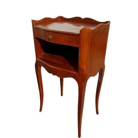 To træborde fra Italien i Art Déco-stil, anslået 1990–2000, i god brugt stand med mindre tegn på alder og pletter; mål 55 cm bredde, 45 cm dybde, 65 cm højde. Klik på den blå "gå til varen" knap, for at købe eller byde på denne vare. Den samlede pris vil blive vist inden du afgiver dit bud.
