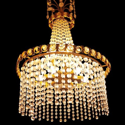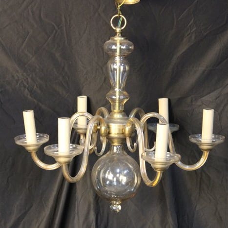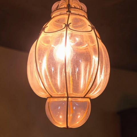 Lysekronen med 3 lys fra 70'erne lavet af ambrafarvet Murano-glas.