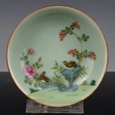 Porcelæn fra Kina fra Qianlong-perioden (ca. 1730–1750) punchskål med Famille Rose-dekor af fugle og blomsterhave, mål 11,5 x 26,7 cm, betegnet Qianlong Punchbowl; i god stand. Klik på den blå "gå til varen" knap, for at købe eller byde på denne vare. Den samlede pris vil blive vist inden du afgiver dit bud.