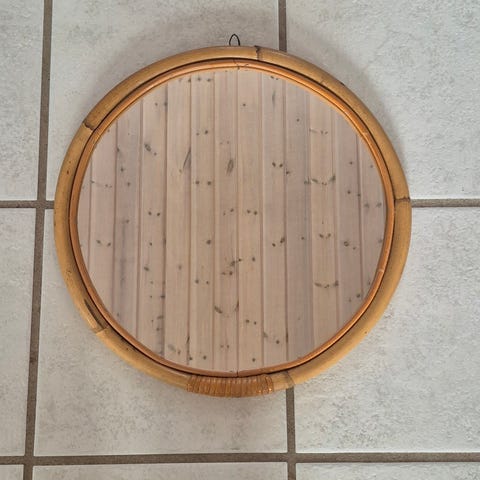 Spejl - Glas, Bambus - Vintage rundt spejl med ramme af bambusrør og siv