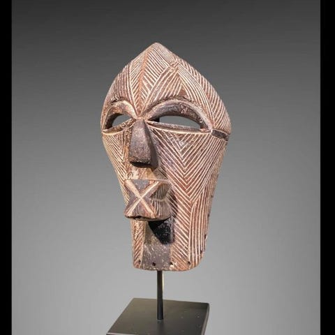 Songye Kifwebe maske, med titel 'Sonye Kifwebe Maske', træ fra DR Congo, provenance privat samling, dimensioner 52 cm høj, 31 cm bred, 30 cm dyb, vægt 1820 g, i rimelig stand, leveres uden stand. Klik på den blå "gå til varen" knap, for at købe eller byde på denne vare. Den samlede pris vil blive vist inden du afgiver dit bud.