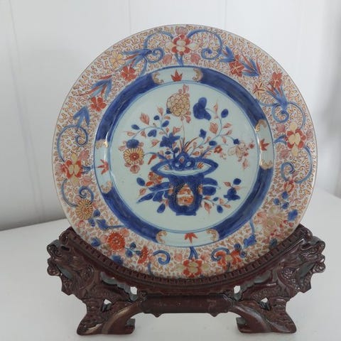 Meget smuk Imari-tallerken i kinesisk porcelæn fra Kangxi-perioden 1622-1750