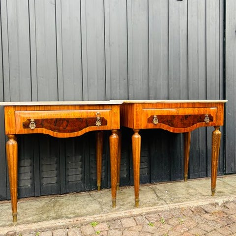 Natbord - Fransk antik - Marmor, Valnød - Komplet med bagvæg