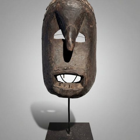 Monpa tiger maske, træudgave fra Indien, midten af det 20. århundrede, 24 × 20 × 18 cm, 600 g, i god stand, provenance Privécollectie (tidligere tysk privat samling). Klik på den blå "gå til varen" knap, for at købe eller byde på denne vare. Den samlede pris vil blive vist inden du afgiver dit bud.