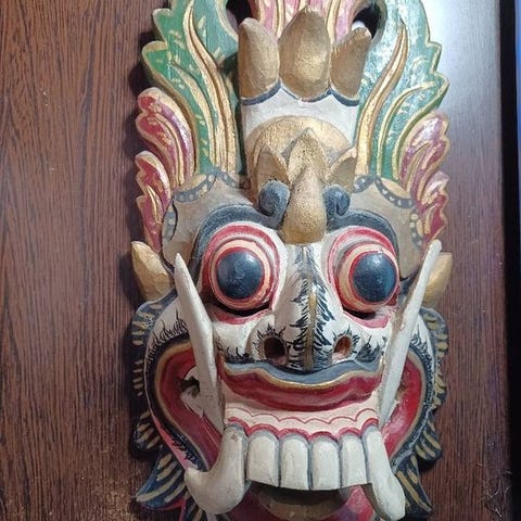 Unik shamanmaske af Himalaya-tiger. Monpa-masken, Arunachal Pradesh (Indien). Kraftfuld træmaske fra Indien. I god stand med tegn på slid og ælde.