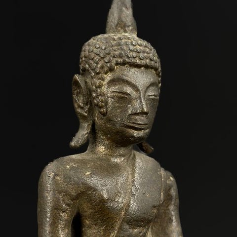 Bronze Buddha-statue i Lan Na-kongedynamik fra Thailand, H. 20,5 cm, ikke underskrevet, sælges ikke med stand, generelt god stand for sin alder, oprindelse Kanaka The Collection. Klik på den blå "gå til varen" knap, for at købe eller byde på denne vare. Den samlede pris vil blive vist inden du afgiver dit bud.