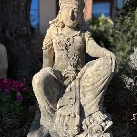 Originalt tempelornament fra Ubud/Bali. Afkomst fra privat hus/villa tæt på Ubud. Patinaen er utrolig og et ægte mesterværk inden for træsnideri. I 25 år med sourcing i Indonesien har jeg endnu ikke set et så smukt ægte stykke! Som regel bliver bunden af disse fødder rådnet på et gammelt stykke som dette på grund af fugt i jorden, men denne gør det ikke! Sjældent spektakulært stykke, ikke ofte set i denne størrelse... se bagsiden på foto, man kan se alderen!