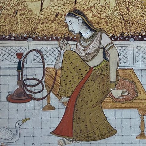 Elegance af Mughal-Rajasthan: arkitektonisk panel i rød sandsten med blomsterkrukke og spor af polykromi, Nordindien, første halvdel af det XVIII. århundrede