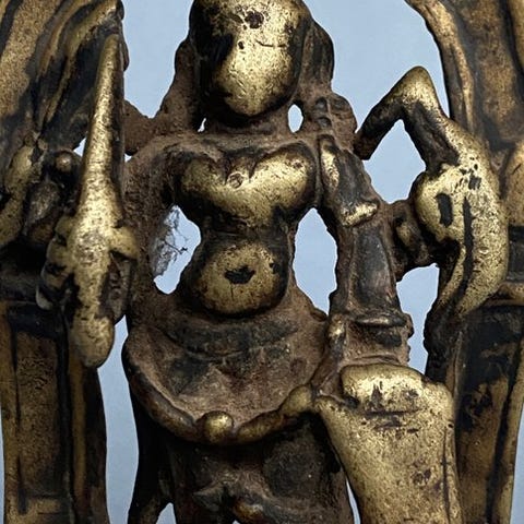 Originalt Mughal-æra rødt sandstens arkitektonisk panel fra Nordindien, ca. 1700–1750, 41 × 50 cm og 5 cm dybde, reliefover et vase med stiliseret plante motiv, i god brugt stand. Klik på den blå "gå til varen" knap, for at købe eller byde på denne vare. Den samlede pris vil blive vist inden du afgiver dit bud.