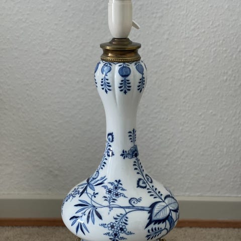 Meissen-tildelt lampe i porcelæn og messing fra 1800-tallet, Tyskland, i fremragende stand uden skår, elektrisk system fornyet, i funktion; lampehøjde 54 cm, lampeskærmens omkreds 102 cm, basens omkreds 42 cm, ledningslængde 185 cm; afbryderen er en lille nålefirkantetop på toppen af lampeskærmen som skal drejes manuelt. Klik på den blå "gå til varen" knap, for at købe eller byde på denne vare. Den samlede pris vil blive vist inden du afgiver dit bud.