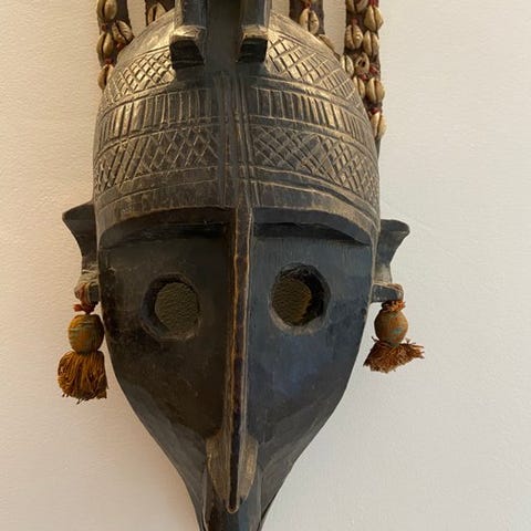 Masque du Kono, Bamana maske fra Mali fra midten af det tyvende århundrede, fra privat samling, 37 cm høj, 1 cm dyb, 1 cm bred, vægt 1 g, i fremragende stand, autentisk/original. Klik på den blå "gå til varen" knap, for at købe eller byde på denne vare. Den samlede pris vil blive vist inden du afgiver dit bud.