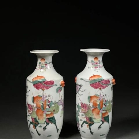 Par af sekskantede porcelænsvaser fra Kina fra det 18. århundrede under Qianlong-perioden.