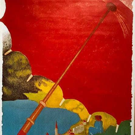 Original plakat aldrig restaureret. Tilstedeværelse af folder og betydelige sammenkrøllinger over hele overfladen, kant-slid og tidsmærker, uden større rifter eller mangler. Farverne er stadig stærkt kontrasterende.