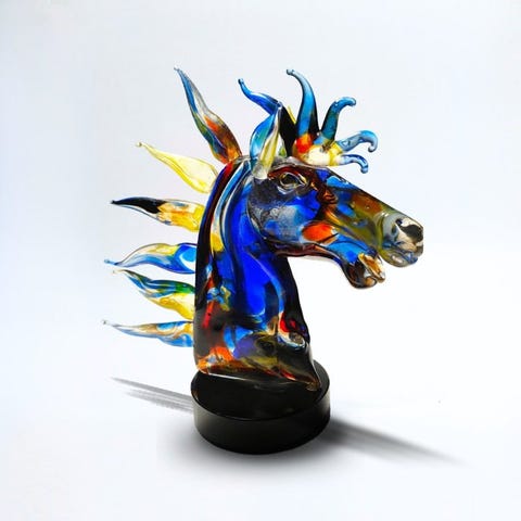Musikinstrument udført i hånddekoreret glas med farvede emaljer efter Murano-dekoratorernes teknik. Mål ca. 15x8 cm. Hurtig, professionel og garanteret forsendelse.