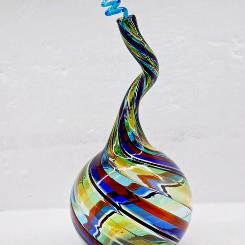 Musikinstrument af glas, hånddekoreret med farvede emaljer efter Murano-teknikken, underskrevet Vetreria Zecchin, Italien, 2026, dimensioner ca. 15 x 8 cm, i fremragende stand. Klik på den blå "gå til varen" knap, for at købe eller byde på denne vare. Den samlede pris vil blive vist inden du afgiver dit bud.