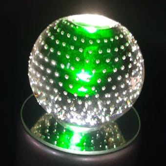 Kugleformet. Papirvægten viser en stor magnoliablomst i hvid- og rosen nuancer på blå bund med fire grønne blade. Den blå bund skaber ved visse