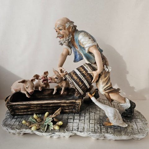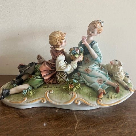 Porcelænsk kunstnerisk polykrom skulptur signeret Giuseppe Armani, fremstillet for Florence Ceramiche i 1997.