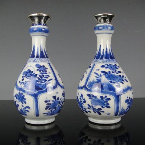 To sjældne kinesiske porcelænsvaser fra Guangxu-dynastiet, med familie- og rose-mønster, omkring 24 cm højde, i fremragende stand. Klik på den blå "gå til varen" knap, for at købe eller byde på denne vare. Den samlede pris vil blive vist inden du afgiver dit bud.