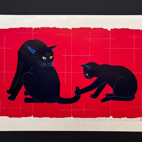 Denne sjældne originale tegning af Go Mishima (三島剛, 1924–1988) skildrer en ung mand i en markant, selvsikker pose og afspejler kunstnerens særegne visuelle sprog udviklet i hans modne periode.
