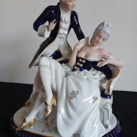 Toilettesæt 'Half-Doll' i ægte Limoges-porcelæn, Frankrig. Jeg tror, det er Art Deco fra 1930'erne.