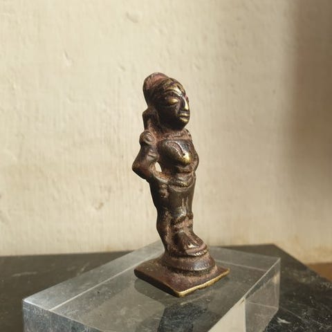 Sjælden bronzeunstøbning, skildrer Bahubali fra Indien, dateret til 1667 e.Kr. under Mogulperioden, base med Devanagari-inskrift, Originale attribution, dimensioner 14,5 × 5,5 × 5,5 cm. Klik på den blå "gå til varen" knap, for at købe eller byde på denne vare. Den samlede pris vil blive vist inden du afgiver dit bud.