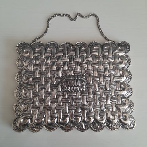 Et 36 cm højt stål-spejlhus med massivt sølvpræget dekoration på en udsavet træfod, dateret til 1837–1842 under Muhammad Ali Shahs regering i Awadh, Indien, angivet som original. Klik på den blå "gå til varen" knap, for at købe eller byde på denne vare. Den samlede pris vil blive vist inden du afgiver dit bud.