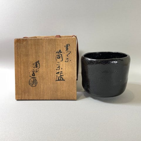 Japansk Raku-stil tekop (Chawan) med signeret Tomobako-boks – Håndskrevet kal...