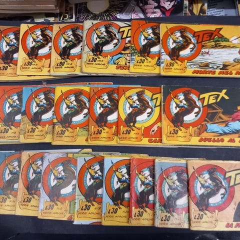 Tex Serie 1/29 komplet sæt inkl. numre 01/02/03, begrænset udgave, 32 hæftebøger på italiensk, tegninger af Aa. Vv., i eminent stand, udgivet af Audace Bonelli. Klik på den blå "gå til varen" knap, for at købe eller byde på denne vare. Den samlede pris vil blive vist inden du afgiver dit bud.
