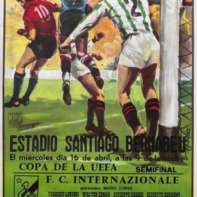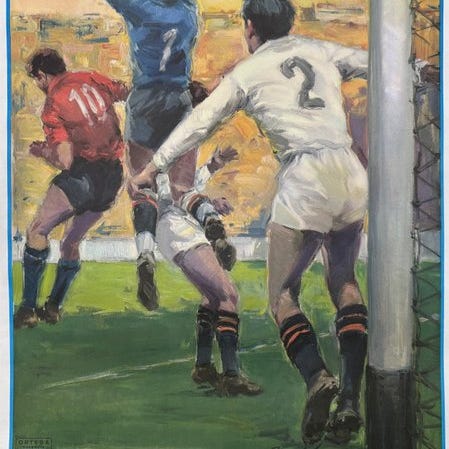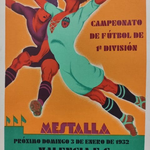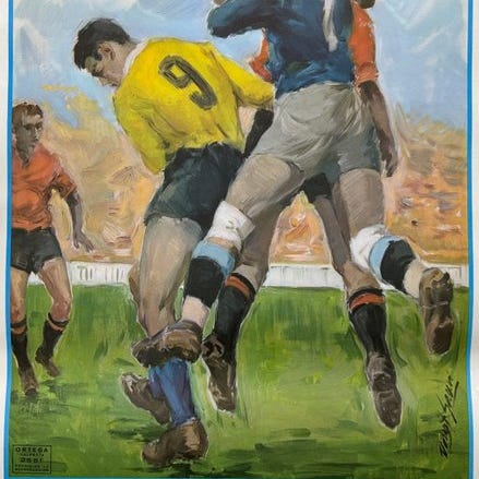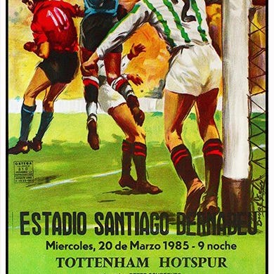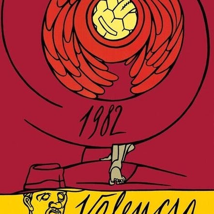 Original plakat for en fodboldkamp i Spanien i 1986