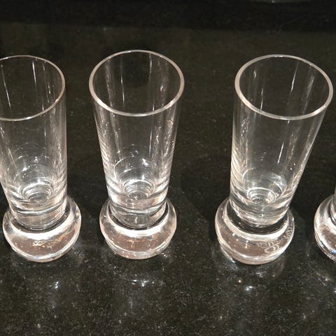 Et komplet sæt på seks vidunderlige likørglas, designet af Michael Böhm i 1977 for Rosenthal. Højkvalitets samlerobjekter med producentmærke.
