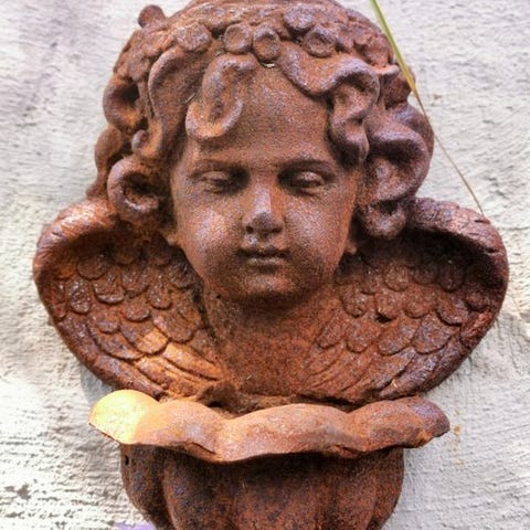 engelstatue på en kugle med finish i blomstermotiv