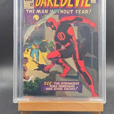 Daredevil tegneserie, første udgave (Vol. 1) nr. 77, af Gene Colan, Sal Buscema, Tom Palmer og Gerry Conway, stand Very Fine, Marvel Comics, 1971. Klik på den blå "gå til varen" knap, for at købe eller byde på denne vare. Den samlede pris vil blive vist inden du afgiver dit bud.