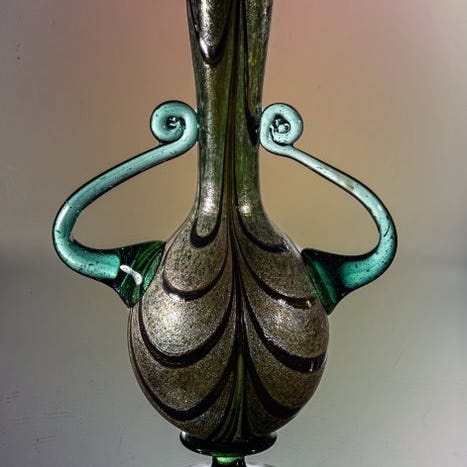 Elegant vase i kunstglas med indlejret glas tilskrevet Jaroslav Svoboda, mester i bøhmiske glas.
