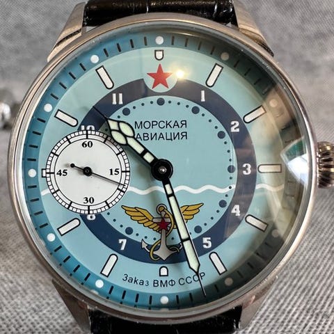 I 1960 producerede 1st MWF named after Kirov de første ure under mærket “Poljot” (Полёт) – Flight til ære for de første succesfulde opsendelser af de første sovjetiske satellitter. På uret ser vi et billede af en satellit, der flyder i kredsløb, med det russiske ord