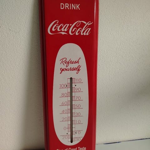 Coca Cola, køleskab i metal lavet i Italien, ca. 1950–1960, i god brugt stand med små aldersmærker og i funktion. Klik på den blå "gå til varen" knap, for at købe eller byde på denne vare. Den samlede pris vil blive vist inden du afgiver dit bud.