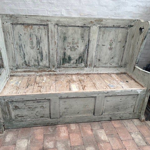 Vintage træbænk til fødder fra 1960’erne/1970’erne, polstret med rød vinyl og kanter i rosa-skal/ beige, med opbevaringsrum og dekorative sømme; mål 44 cm bredt, 31 cm dybt, 37 cm højt; vægt ca. 6 kg; oprindelse Nederlandene. Klik på den blå "gå til varen" knap, for at købe eller byde på denne vare. Den samlede pris vil blive vist inden du afgiver dit bud.