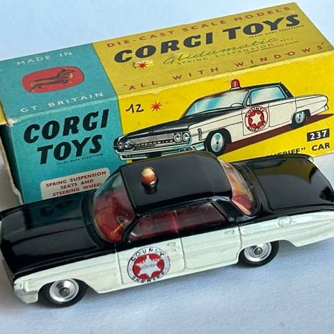Originalt 60+ år gammelt vintage Corgi-Toys No 419 Ford Zephyr Motorway Patrol i fejlfri stand.