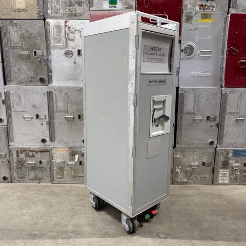 En sjældent udbudt halvstor WASTE-flytrolley fra British Airways (BA).